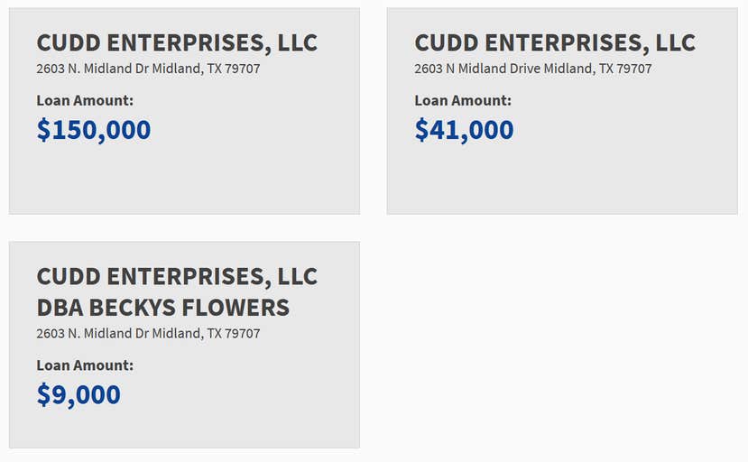 According to program rules, businesses may receive one PPP loan and one EIDL loan. It is unclear why Cudd, who is also a former mayoral candidate, received more than two loans.