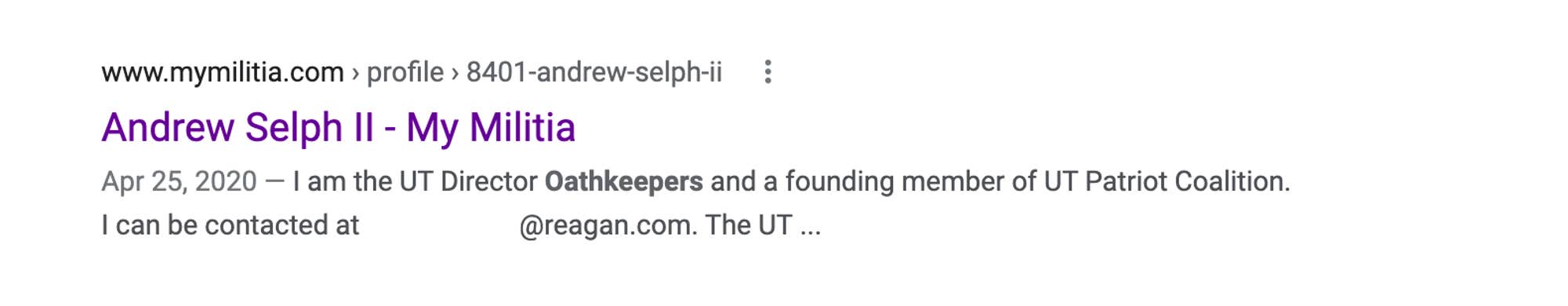 On MyMilitia.com, a profile for Selph that appears on a Google search describes him a "the UT Director Oathkeepers."