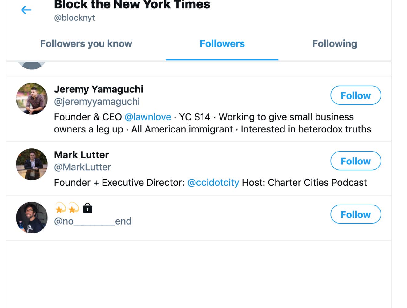 It remains unclear how many downloads the app has received thus far, although the Twitter account for Block the New York Times has garnered more than 3,700 followers.