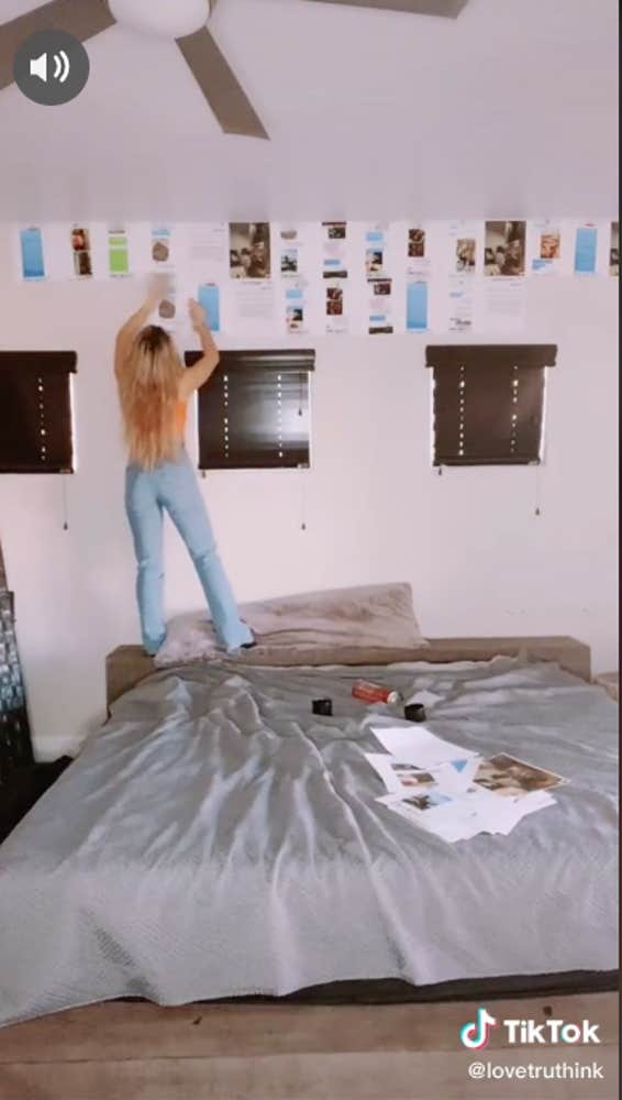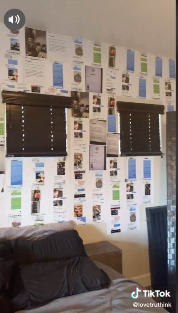 She printed out all the proof, including messages between him and other girls, and picked up some superglue from Home Depot. She then plastered all the evidence on the walls of his bedroom, as well as on his full-length mirror, because she had excess messages and says "he probably won't be able to look at himself."