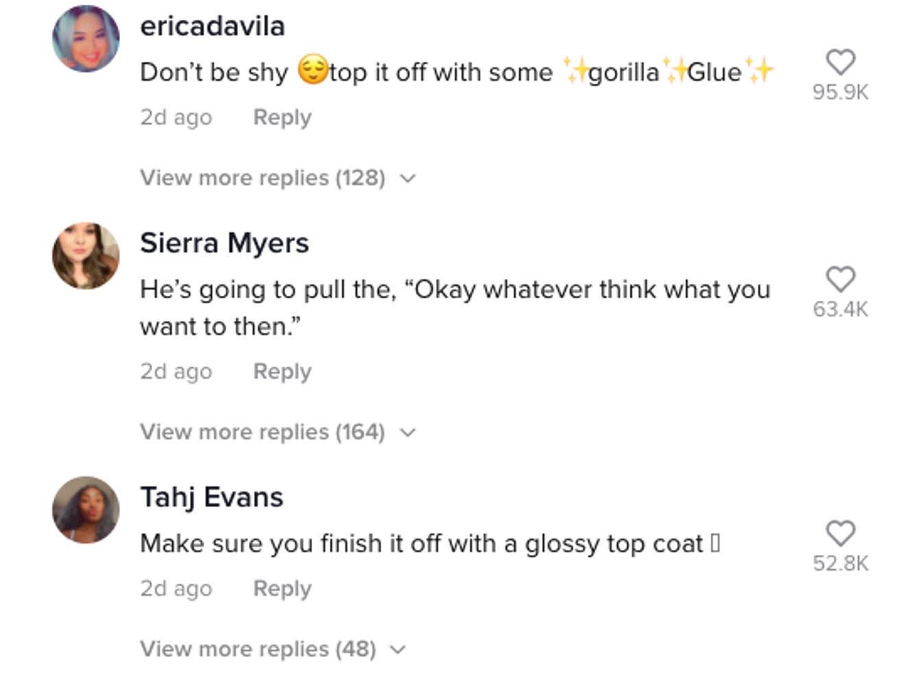 Most of the comments left on the videos are in support of Zambrano, some even encouraging her to take it a step further and use a more permanent adhesive, such as Gorilla Glue.