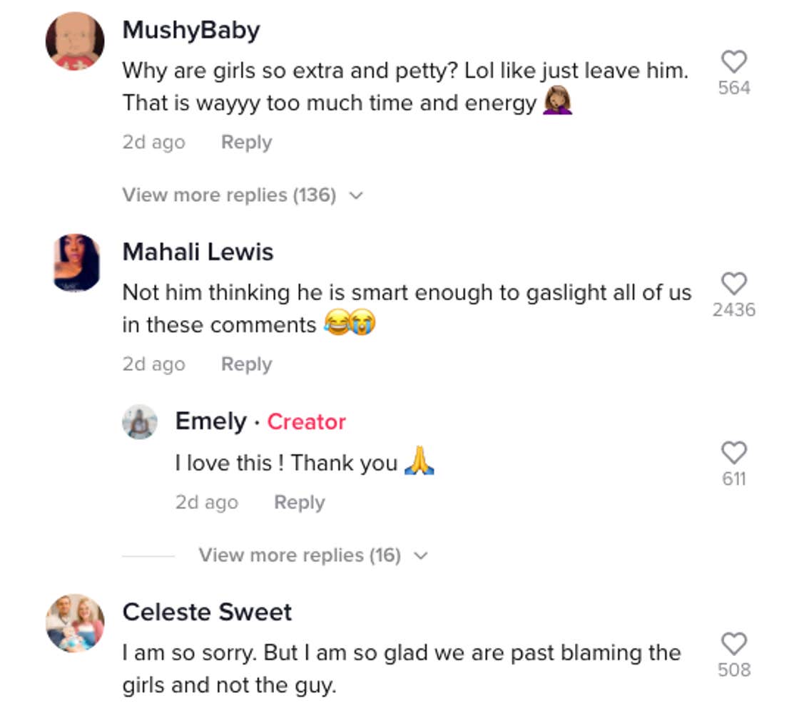 Despite how they feel about the revenge, many requested a follow-up to the saga, and Zambrano obliged. She warned viewers that "part 3" is not featuring the dramatic confrontation they were hoping for. She says she decided to text him that she left him a surprise before ghosting him. She says she chose not to confront him because the last time she accused him of cheating, he "manipulated his way out of it."