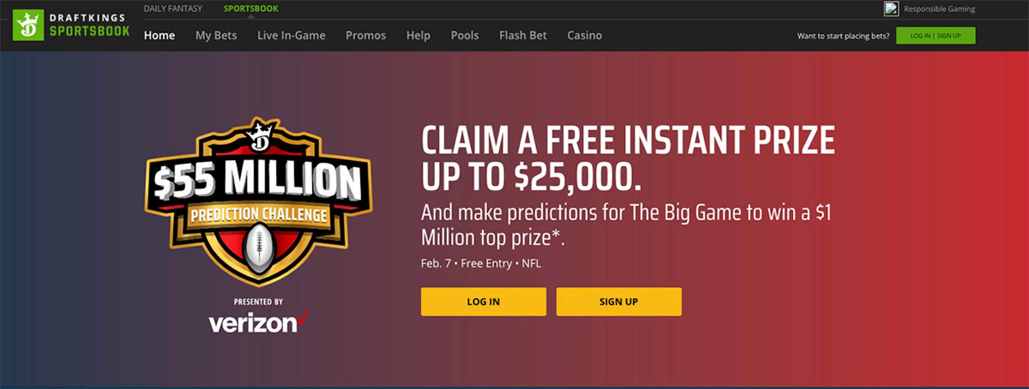 DraftKings Sportsbook was created in 2018 by DraftKings, which got on the map with its fantasy sports games. It currently operates in five U.S. states where online or onsite sports betting is legal, and it's leading the charge for legal sports betting across the U.S. Visitors in legal states (confirmed through geolocation) can jump into the full spectrum of Super Bowl betting, as well as NBA, NHL, and soccer around the globe.