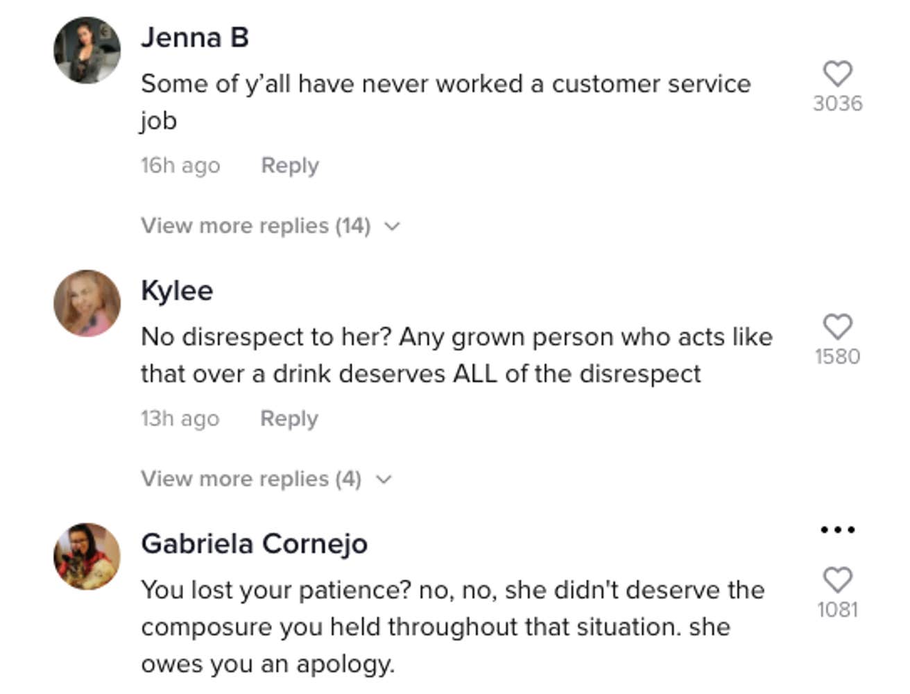 Viewers of both videos flocked to the comments sections to denounce the customer's behavior and laud the teen. "Normalize returning the energy that customers give you," one said.