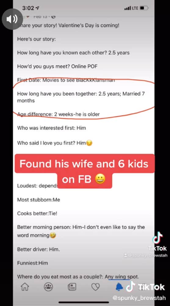 After learning that Eric was a "one lady kind of man," Nadiyah did some online sleuthing. She found out, through his wife's Facebook profile, that Eric has been in a relationship for two-and-a-half years (married for seven of those months) and has six children.