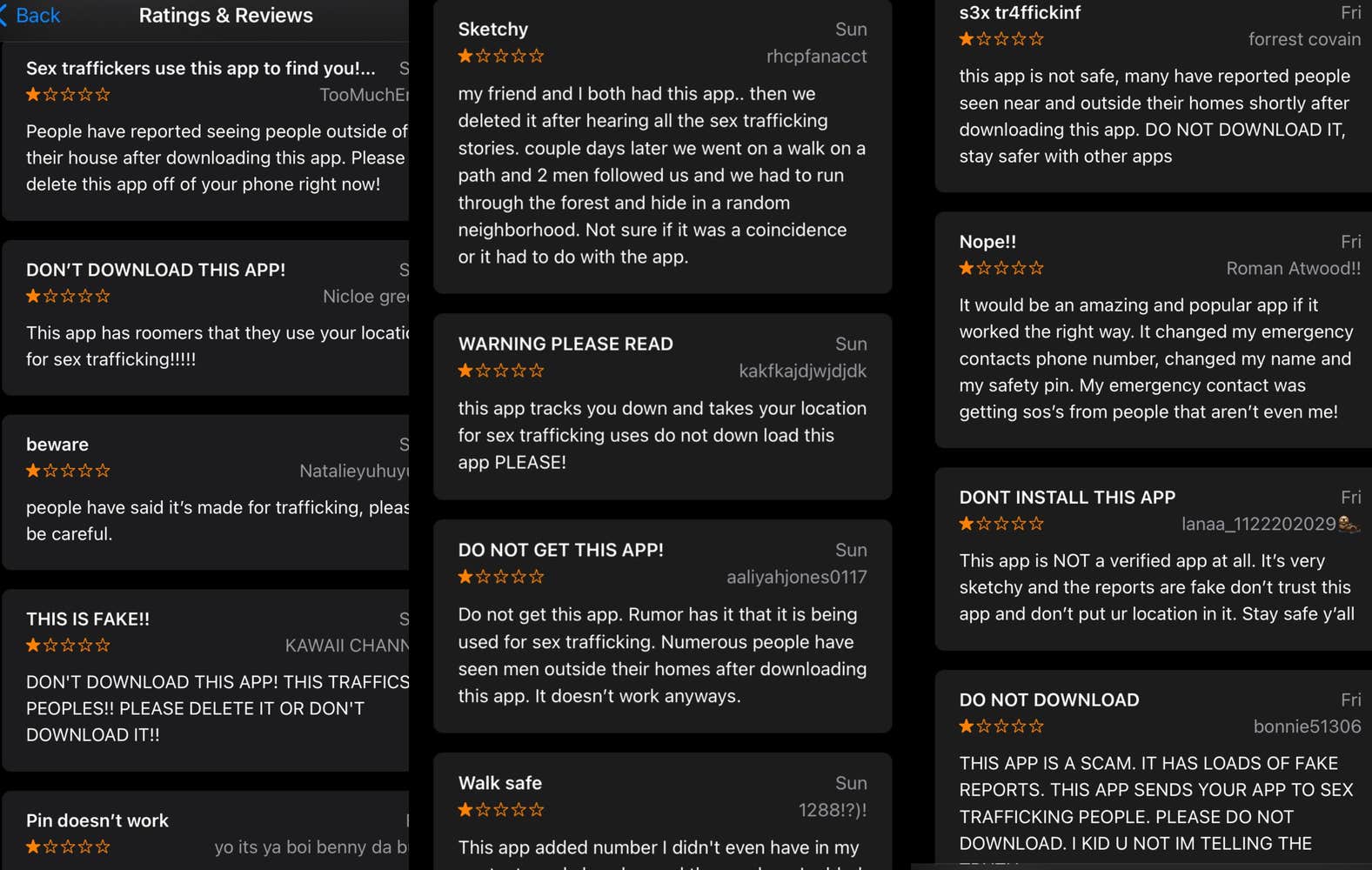 “It sends your location and its used for sex trafficing women,” the user continued. “The app isn’t even verified. People have been saying people have been showing up outside of their house literally please delete it its (sic) not safe at all.”