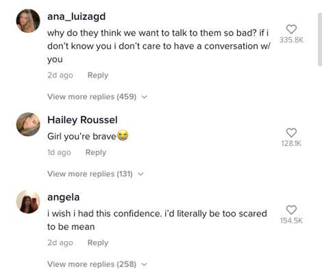 Others commended the way Avianna handled the situation, remarking on how they feel like they have to be nice to stay safe. “I wish I had this confidence. I’d literally be too scared to be mean,” one said.