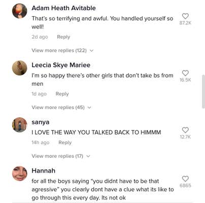 “As a woman I know exactly the rage and fear you felt. We have to act this mean because IT IS NOT WANTED,” another said.