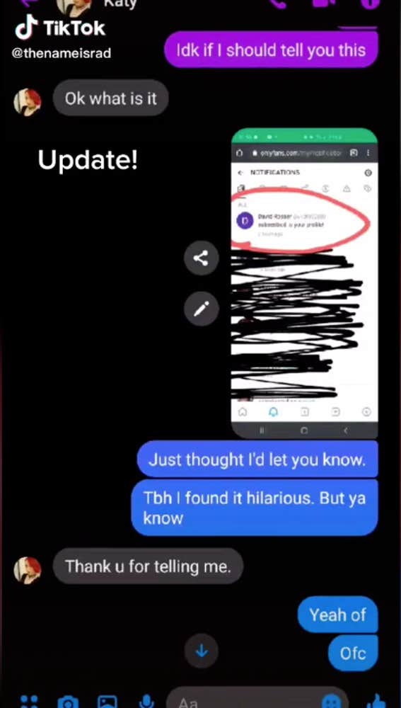 Rad says the wife asked her to “see if it was him,” so the TikToker messaged the subscriber. The subscriber changed their full name and told RAD they are not him but “someone who doesn’t like him.”