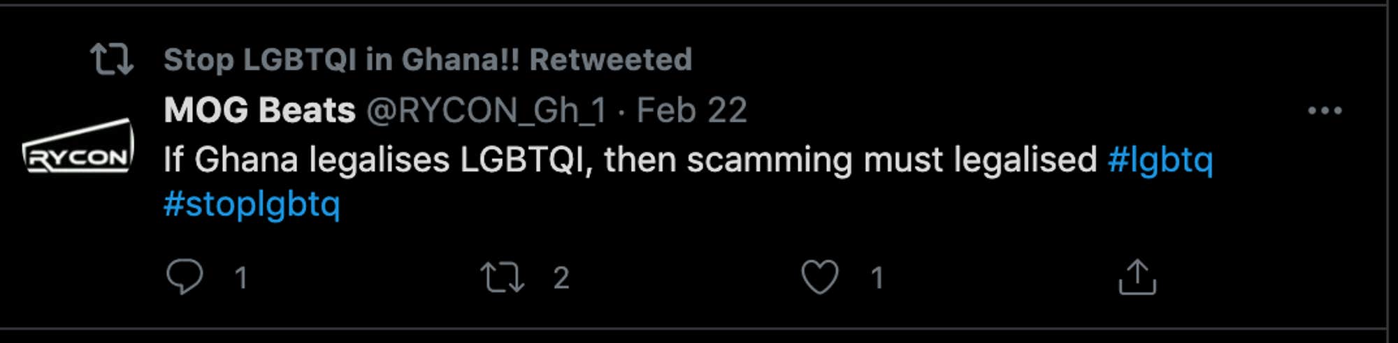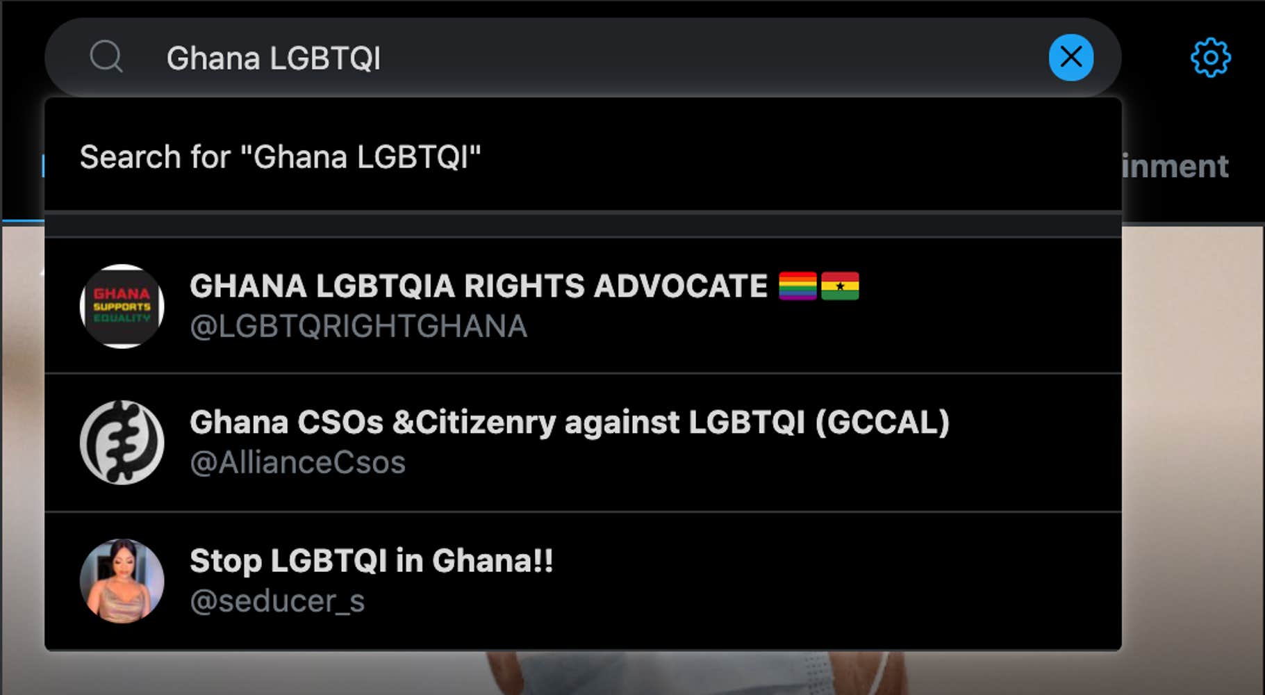 The anti-LGBTQ rhetoric is so widespread on Twitter that when the Daily Dot searched for “LGBTQI Ghana” on the site on Monday, anti-LGTBQ pages showed up.