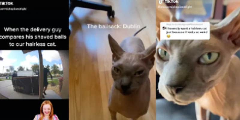 TikToker Melissa McCormick shared a clip from her doorbell camera of two delivery men dropping off her new television. But, apparently, they weren’t amused by her grey Sphynx cat, Dublin. One man points out hairless Dublin and pointedly says, “Yuck.” After knocking on the door, one voice says: “How do people hold those things, man? It’s disgusting, bro. They all look like my balls when I shave.” Luckily, McCormick found the interaction “comical.”
