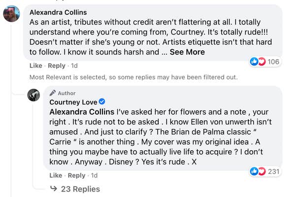 Love continued to call out Rodrigo on Facebook, saying “It’s rude not to ask [for permission to recreate the photo].” Numerous Hole fans agreed that Rodrigo should have asked for Love’s blessing to pay homage to Live Through This, calling it “artist etiquette.” Many also praised Love and thanked her for the impact of the Hole album.