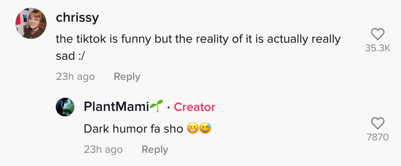While acknowledging the humor of the TikTok and how it was edited—again soundtracked to Bo Burnham's "Bezos"—other found the reality of the situation sad.