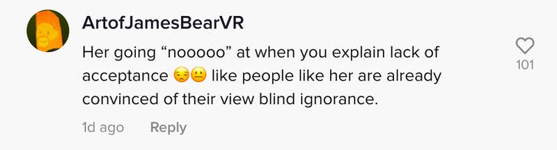 Viewers adamantly agreed with Hannah. One commented, “When you hit her with the ‘that’s because of a lack of acceptance’!! HOW DO THEY NOT UNDERSTAND THAT BY NOW?”