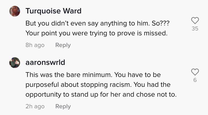 “You have to be purposeful about stopping racism,” one user commented. “You had the opportunity to stand up for her and chose not to.”