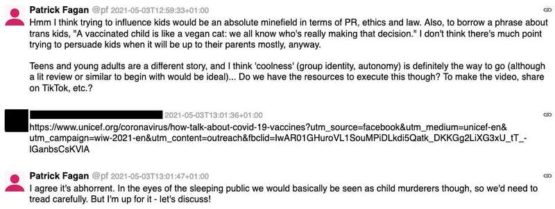 Fagan also weighed in on the questioning of influencing children and teens with anti-vaccine content, noting that the group could be seen as "child murderers" if they were to push anti-vaccine content to minors.
