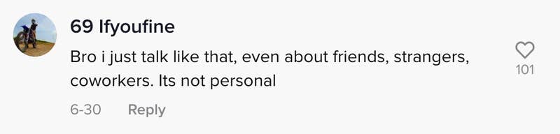 “Bro, I just talk like that, even about friends, strangers, coworkers,” one user commented. “It’s not personal.”