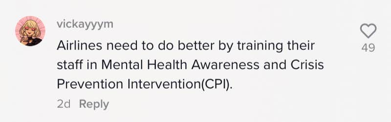 One person suggested that airlines should have better crisis prevention training for mental health incidents.