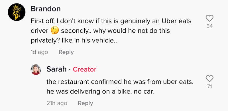 The Daily Dot has reached out to @sarahfromflorida and Uber Eats about the video.