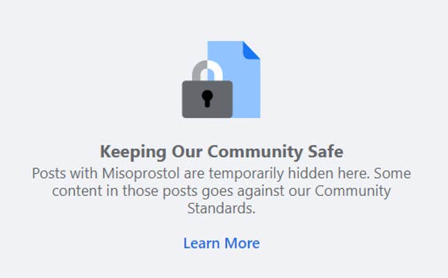 Facebook, which owns Instagram, told the Daily Dot via email that the terms were blocked in error and that it predated the Texas law. As of this writing, Facebook had unblocked searches for misoprostol. Both hashtags remained blocked on Instagram, with the message about some posts being hidden.
