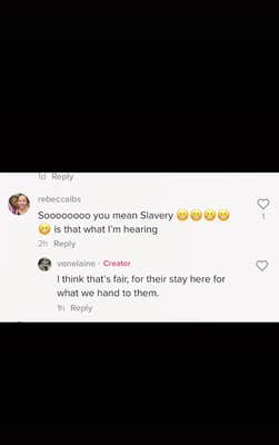 "I think you're asking for slavery back," they said. "Before you say, 'that's not what I'm saying,' because I know, I know how TikTok and white woman tears work, I know, but look what I found already."