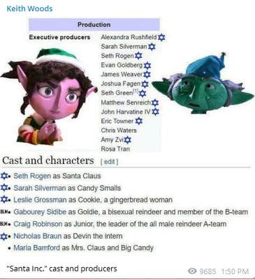 It's not clear precisely what attracted the attention of antisemites and Holocaust deniers. That two Jewish people, Silverman and Rogen, are starring in the Christmas special seems to have factored in, as many of the comments reference their religion.