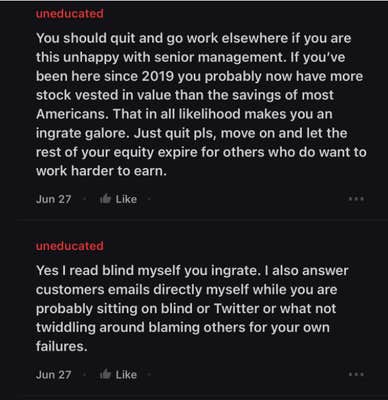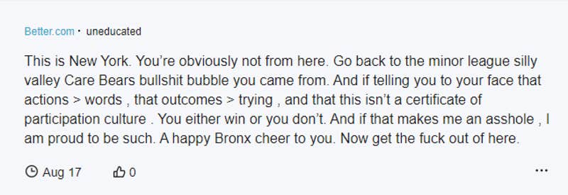 Usernames on Blind are unique, but it is possible that someone else previously went by "uneducated," identified themselves as an employee of Better.com, and aggressively defended the company on the platform. Better.com did not respond to the Daily Dot's emailed inquiry sent Monday morning seeking to confirm whether Garg made the previous comments.